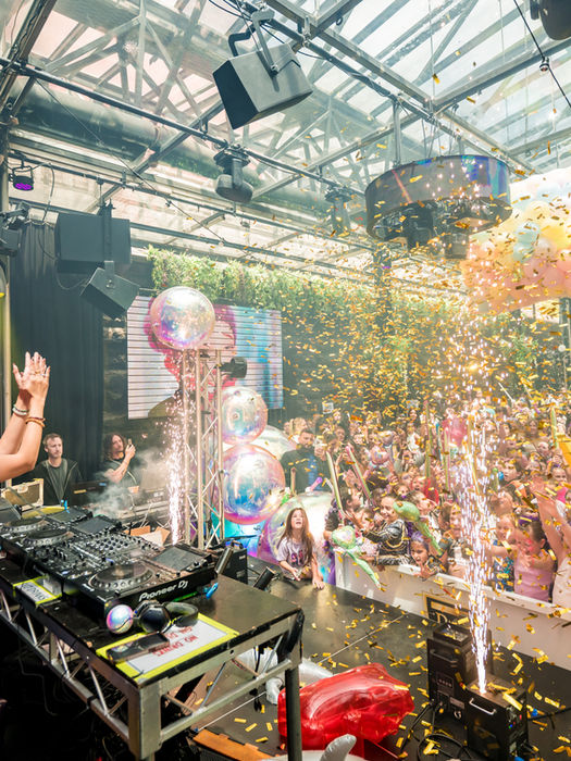 Expect balloon drops, confetti bursting into the air, giant inflatables moving through the crowd, roaming performers and electric moments. All centred around the main stage, where the energy builds and the dancefloor comes alive.